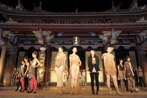 臺北市文化局舉辦第7屆漢字文化節(jié),“自成風(fēng)尚”服裝秀17日晚以孔廟大成殿回廊作為伸展臺,共展出41套設(shè)計作品。主辦單位2011年首度邀請實踐大學(xué)服裝設(shè)計學(xué)系、輔仁大學(xué)織品服裝學(xué)系師生參與,由知名服裝設(shè)計師陳季敏擔(dān)任創(chuàng)意指導(dǎo),以工作坊方式進行創(chuàng)作,并提供補助金給學(xué)生設(shè)計師。