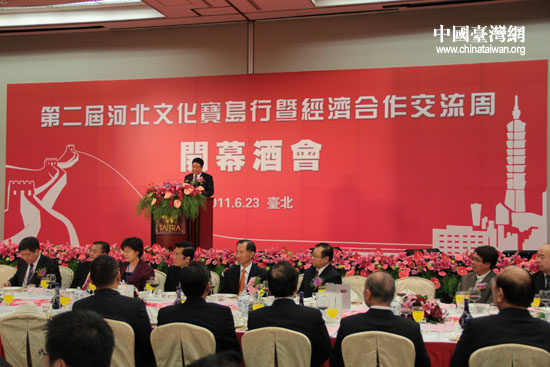 中國(guó)臺(tái)灣網(wǎng)6月23日臺(tái)北消息 第二屆“河北文化寶島行暨經(jīng)濟(jì)合作交流周”活動(dòng)開幕酒會(huì)在臺(tái)北世貿(mào)中心舉行,河北省委常委劉永瑞主持開幕式。河北代表團(tuán)成員及臺(tái)灣各界知名人士共300余人參加開幕式。