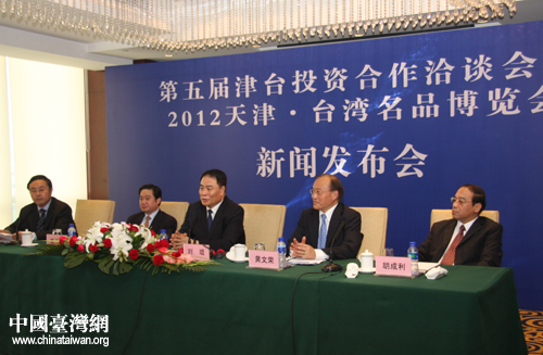 第五屆津臺投資合作洽談會暨2012天津·臺灣名品博覽會新聞發(fā)布會在津舉辦。圖為發(fā)布會現(xiàn)場。(中國臺灣網(wǎng) 王思羽 攝)