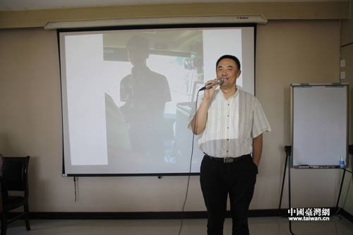 海峽經(jīng)濟科技合作中心副主任蕭毅評價參訪團表演。(中國臺灣網(wǎng) 梁行 攝)