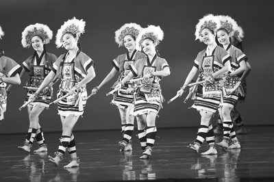 2015海峽兩岸青少年舞蹈交流展演近日在臺(tái)灣藝術(shù)大學(xué)舉辦,來(lái)自大陸3所高校和臺(tái)灣6所高校的百余名大學(xué)生同臺(tái)表演,以舞會(huì)友。圖為臺(tái)灣藝術(shù)大學(xué)學(xué)生表演舞蹈《印象山林》。新華社記者 韓瑜慶攝