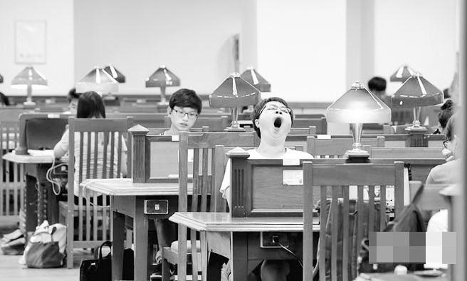 臺灣高校近年競爭力下降,一些人期待大陸學(xué)生帶來鯰魚效應(yīng)。圖為臺灣大學(xué)圖書館自習(xí)室的場景。