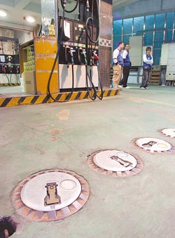 恒加加油站29日加油的車輛已明顯減少,圖為該加油站地面油槽未鉛封的加油口。(臺灣《中國時報》圖片)