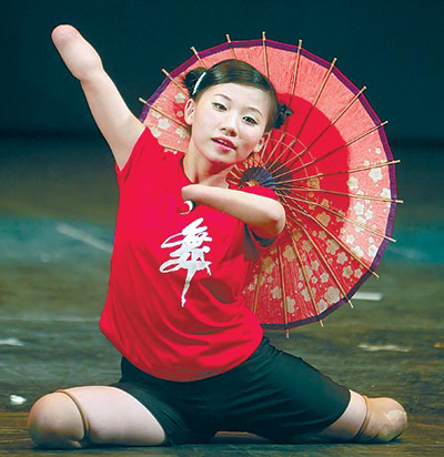 韋齊小時候就學跳舞、學彈琴,直到她因病被迫截肢,這兩件事變成“夢想”,但昨晚她還是實現(xiàn)了這個夢想。她用截肢后的雙腿踩著滑板出場,引得全場熱烈掌聲;再隨著《虹彩妹妹》的節(jié)奏擺動身軀、轉(zhuǎn)動紙傘。她就像沒有翅膀的天使,在舞臺上慢慢飄舞。