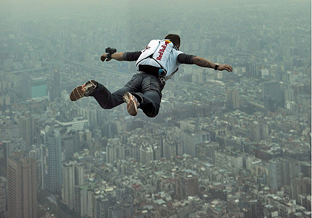 據(jù)臺灣《中華日報》報道,38歲的奧地利“定點跳傘”者Felix Baumgartner于11日在未得一O一許可,從508米高的臺北一O一高樓縱身跳傘。