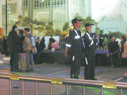 現(xiàn)場氣氛尷尬,因舞臺前主辦單位還安排了兩位真警察站崗,兩位警察見狀,一動也不動。記者問:“你看了覺得如何?”警察氣憤地說:“有很多人來問我,但那些一看就知道是假的!睋(jù)悉,最后該活動仍選出比基尼冠軍,巧的是,得獎的女子又是脫掉比基尼用手遮住重點的舞者。