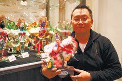 他從8歲就開(kāi)始學(xué)習(xí)紙藝,一度還去參加八家將的演出,越演越有心得,且更能揣摩八家將的造型跟神韻,就以細(xì)膩的觀察力跟工法,將八家將融入到紙藝?yán)镱^。