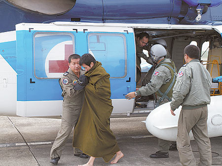 圖為海鷗直升機將船員平安救抵機場。圖:臺灣《中國時報》