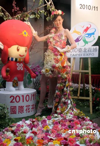 2月1日,2010年臺(tái)北國(guó)際花卉博覽會(huì)吉祥物及LOGO揭曉。吉祥物名為“花兒絲樂(lè)團(tuán)”(模特左),是一組由四季鮮花抽象來(lái)的卡通精靈組成的音樂(lè)組合團(tuán)。LOGO由五種顏色的五個(gè)人形花瓣組合而成(模特右)。 中新社發(fā) 徐長(zhǎng)安 攝