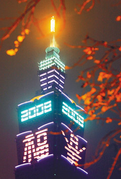 中國臺灣網(wǎng)2月4日消息 據(jù)臺灣《聯(lián)合報》報道,農(nóng)歷年腳步已近,臺灣各地已聞到過年的氣氛,臺北101大樓秀出“春”、“!弊謽酉蚴忻癜菽辏谝雇韯e有一番風(fēng)味。(周先)