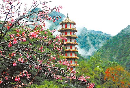 中國臺灣網2月6日消息 櫻花開了!據臺灣“中時電子報”報道,臺灣中橫公路天祥的櫻花在低溫中盛開。青山環(huán)繞下,櫻花在祥德寺的寶塔前格外搶眼。今年春節(jié)期間,太魯閣公園開辦游園專車,讓游客可以輕松乘車進太魯閣到天祥賞花,再走進祥德寺為新的一年祈求好運道。