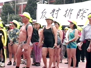 據(jù)臺(tái)灣媒體報(bào)道,抗議民眾拉著白布條,有人只穿著泳衣、泳褲,高喊著“還我市立游泳池,我要游泳、我要游泳!”