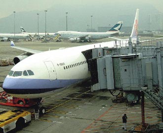 華航已準備在兩岸達到天天有航班直航時,將臺港線航班,從現(xiàn)在每天18班大幅縮減到8班,搶食兩岸直航商機。臺灣《經(jīng)濟日報》記者郭維邦攝