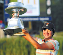 中新網(wǎng)6月10日電 年僅十九歲的臺(tái)灣高爾夫球女將曾雅妮,昨天在女子職業(yè)高爾夫四大賽之一的麥當(dāng)勞美國LPGA錦標(biāo)賽中擊敗瑞典好手霍斯,贏得生涯第一座美巡賽冠軍,也成為這項(xiàng)大賽歷來最年輕的冠軍得主。