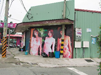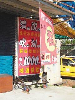 色情小吃店貼出大幅清涼女郎海報,吸引酒客上門。(圖:臺灣《聯(lián)合報》)