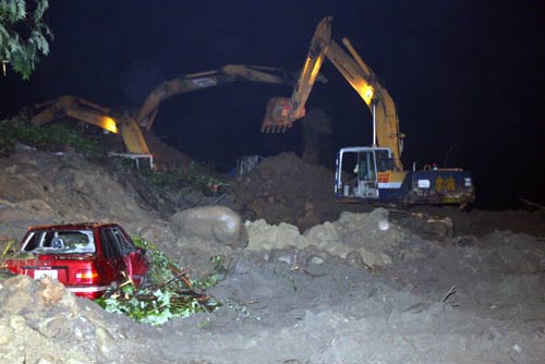事發(fā)后,現(xiàn)場共動員二百名相關(guān)單位人員及五部重機械搶救,至當(dāng)晚九時搜出四輛汽車(包括一輛廂型車、兩輛小客車、一輛小貨車)及一部摩托車。