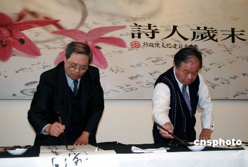 臺灣“文建會”主委黃碧端說,這么多著名的詩人圍爐敘舊,是臺灣文化界的一件盛事。此次聚會,是希望留下詩人們的手稿真跡,以后將這些墨寶制作成陶器、石器等文化產品,發(fā)展臺灣的文化創(chuàng)意產業(yè)。