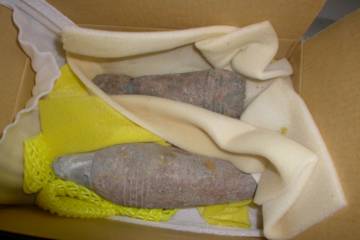 中新網(wǎng)12月23日電 臺(tái)灣臺(tái)中縣大甲溪河床中遺落兩顆迫擊炮未爆彈;當(dāng)?shù)匾幻r(nóng)在河床翻土耕種時(shí),以為是兩塊廢鐵,帶回家清洗時(shí)才發(fā)現(xiàn)竟然是未爆彈。