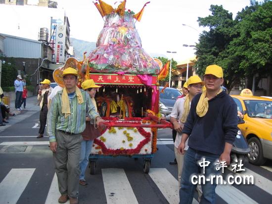 人民網(wǎng)4月20日電 據(jù)中評(píng)社報(bào)道,位于臺(tái)北市北投區(qū)的關(guān)渡宮祀奉媽祖,平日香火鼎盛,遇到媽祖誕辰繞境,信徒更不敢怠慢,按照臺(tái)灣民間傳統(tǒng)習(xí)俗,出動(dòng)各式陣頭,為媽祖助威,沿路民眾也準(zhǔn)備香案,放鞭炮、送紅包祈求媽祖保佑平安。