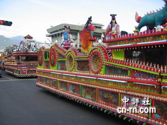 媽祖出巡繞境,陣頭熱鬧不已。(中評(píng)社 林淑玲攝)