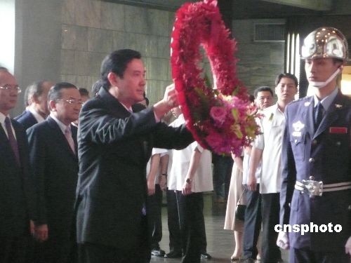 二十一日上午九點四十五分,中國國民黨主席吳伯雄率領(lǐng)黨團要員至孫逸仙紀念館,向?qū)O中山先生的銅像獻花、三鞠躬。