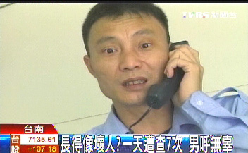 中新網(wǎng)7月28日電 長得像壞人也有錯嗎?據(jù)臺灣TVBS報道,臺南有一名保全人員,因為長相看來比較兇惡,又住在出入份子復(fù)雜的地區(qū),經(jīng)常遭到警方攔檢盤查,最高紀(jì)錄一天就有7次,讓他直呼好無辜。
