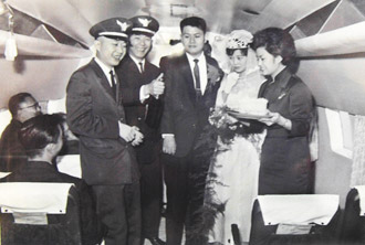當時在華航花蓮站當業(yè)務的高家成即將結婚,與女友當然成了“首度空中婚禮”的最佳男女主角。機上婚禮由機長任歌樵當證婚人,兩位華航第一代空少葉鵬及空姐曹開武、涂咪咪分別擔任男、女儐相。
