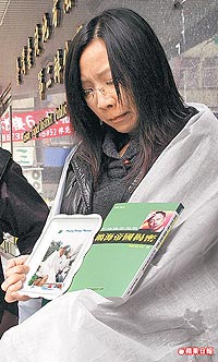《壹周刊》前記者臧家宜(圖)因恐嚇臺灣首富郭臺銘遭判刑,她昨披麻帶孝到臺北地檢署要求入監(jiān)但被勸回。來源:臺灣《蘋果日報》