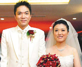 平凡上班族洪肇謙(左)昨天迎娶頂新集團魏應交的3女兒魏佩怡。兩人的愛情故事從超商合作賣涼面說起。圖片來源:臺灣《聯(lián)合報》