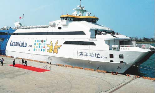 華達(dá)海運(yùn)旗下只有一艘“海洋拉拉號(hào)”,從前年十二月兩岸海運(yùn)直航開放后,華達(dá)為了申請(qǐng)兩岸客運(yùn)營(yíng)運(yùn)許可一波三折,現(xiàn)在又遇到冬季風(fēng)浪大,海洋拉拉號(hào)還停在臺(tái)中港,真正直航兩岸的次數(shù)少之又少。
