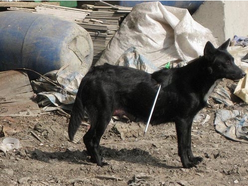 遭箭刺傷的黑母狗。(圖片來源:臺(tái)灣“今日新聞”)