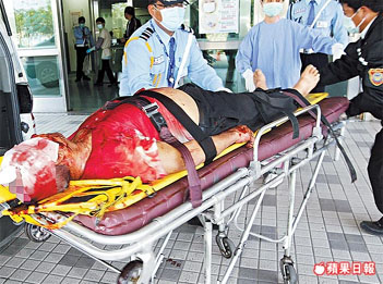 老鄰長(zhǎng)李吳萬(wàn)本被砍得渾身是血,送醫(yī)仍不治。 來(lái)源:臺(tái)灣《蘋(píng)果日?qǐng)?bào)》