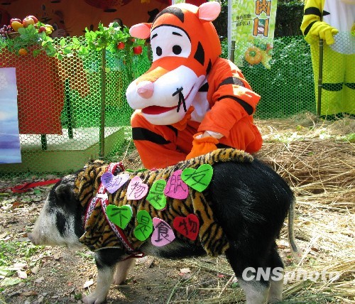 為減少畜牧業(yè)排放的甲烷、保護環(huán)境,臺灣開始推行“周一無肉日”活動,提倡民眾多吃素食。圖為2月28日臺北市一群眾團體舉辦“周一無肉日”活動時布置的“老虎不吃豬”場景,提示人們今年“虎年”老虎都不吃豬了,人類更應減少肉食。 中新社發(fā) 耿軍 攝
