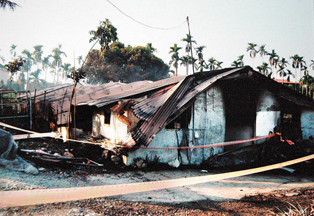 昨天凌晨12時(shí)許,婦人趁老翁熟睡將房門反鎖,拿著打火機(jī)點(diǎn)燃報(bào)紙,企圖燒毀工寮;但眼看大火幾乎吞噬房間,婦人突然反悔,拿起一旁香蕉刀割開紗門,又沖回火場(chǎng)救人。婦人身材嬌小,想徒手抱起雙腳行動(dòng)不便的老翁,卻因力氣不夠雙雙跌落地上,經(jīng)過(guò)幾次努力,最終只能眼睜睜看著老翁葬身火海。
