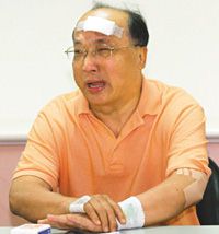 2006年11月,臺(tái)中市長(zhǎng)胡志強(qiáng)車禍后首次露面;當(dāng)時(shí)妻子邵曉鈴仍未脫離險(xiǎn)境,他的憂心、傷痛全寫在臉上。他兩次哽咽地說:“請(qǐng)大家救救我太太! 來源:臺(tái)灣《聯(lián)合報(bào)》