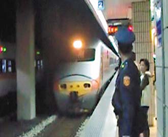 前日晚間臺鐵1039次自強號列車,司機員林宜賢突血壓飆高,緊急求助;緩緩進入臺北車站時,月臺上有不少旅客,鐵路警察早在一旁戒備。圖片來源:臺灣《聯(lián)合報》