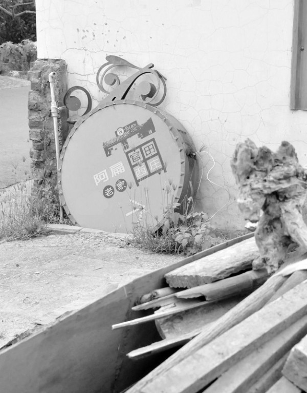 往前再幾分鐘的車程,就到陳水扁的老家西莊村。拐進(jìn)一條無(wú)名的小巷,巷口的電線桿上掛有“官田西莊、阿扁老家”的綠色招牌,已是舊跡斑斑。到了另一個(gè)巷口,一個(gè)圓環(huán)形的“阿扁老家”招牌被扔在廢墟水溝邊上,而不是高高掛起。