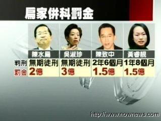 陳水扁并科罰金2億、吳淑珍3億,陳致中和黃睿靚都是1.5億,加起來(lái)共是8億新臺(tái)幣。圖片來(lái)源:臺(tái)灣“今日新聞網(wǎng)”