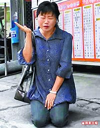 涉嫌體罰女童的安親班主任,還曾入選臺(tái)中縣優(yōu)良老師,昨天面對(duì)家長(zhǎng),一時(shí)情急竟當(dāng)街下跪,自摑耳光,卻仍無(wú)法得到諒解。圖片來(lái)源:臺(tái)灣《蘋(píng)果日?qǐng)?bào)》