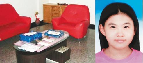 曹家一樓客廳的桌子上整齊擺放曹姓女童寫給不同對(duì)象的遺書(左)。右為身亡的曹姓女童。圖片來(lái)源:臺(tái)灣《聯(lián)合報(bào)》