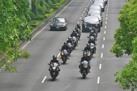 圖為“憨面”移靈車隊由12輛哈雷前導(dǎo),后面跟著30多輛雙B(奔馳、寶馬)。 圖片來源:臺灣《中國時報》