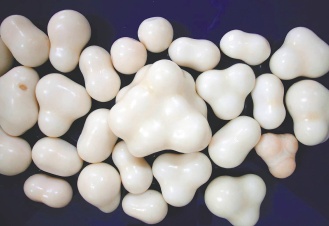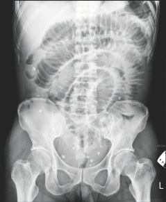 這名女子最近因腹痛、嘔吐而到成大急診就醫(yī),醫(yī)師從X光檢查中,發(fā)現(xiàn)腹腔內(nèi)有許多白點(diǎn)狀的物體,原本以為是糞石或食物堆積在腸道中,經(jīng)緊急開(kāi)刀,發(fā)現(xiàn)這些物體是在腸子外,而非腸子里,醫(yī)師共取出大大小小共29顆,色白、外形橢圓,很像蛋一般,材質(zhì)卻像橡膠一般有彈性。