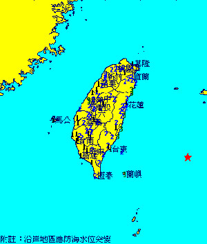 各地震度如下:臺(tái)東、宜蘭、花蓮、彰化、臺(tái)中3級(jí),屏東、南投、嘉義、臺(tái)南、云林、臺(tái)北、苗栗、新竹、桃園2級(jí),高雄、澎湖1級(jí)。 (中國(guó)臺(tái)灣網(wǎng) 陳佳慧)