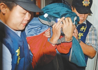 臺(tái)灣清華大學(xué)碩士呂建賢(中)加入制毒集團(tuán),制造安非他命,被捕后掩面哭泣。 來(lái)源:臺(tái)灣《聯(lián)合報(bào)》