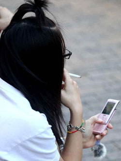 依照臺(tái)灣“煙害防制法”規(guī)定,任何人都不得供應(yīng)煙品給未滿18歲的青少年及幼童,同學(xué)間分享煙品,也會(huì)受罰。圖為打扮時(shí)髦的年青年人在街頭抽煙。來(lái)源:臺(tái)灣《中國(guó)時(shí)報(bào)》
