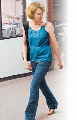 富商邵復(fù)華的烏茲別克籍妻子邵麗娜昨日到警局,才知丈夫背著她找代理孕母。來源:臺灣《蘋果日報》