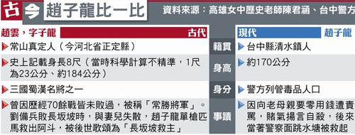 臺灣媒體比較“古今趙子龍”。 來源:臺灣《蘋果日報(bào)》