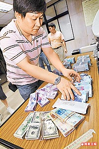 警方起出本票、賬冊、臺幣、美金、港幣合計約一千萬元贓款。圖片來源:臺灣《蘋果日報》