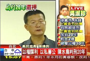中國臺灣網(wǎng)6月11日消息 據(jù)臺灣TVBS電視臺新聞,陳水扁家涉及弊案,今天二審宣判,陳水扁一家人被判處的刑度都比一審來的緩和,理由究竟是什么,下午臺灣“高等法院”庭長做出說明。