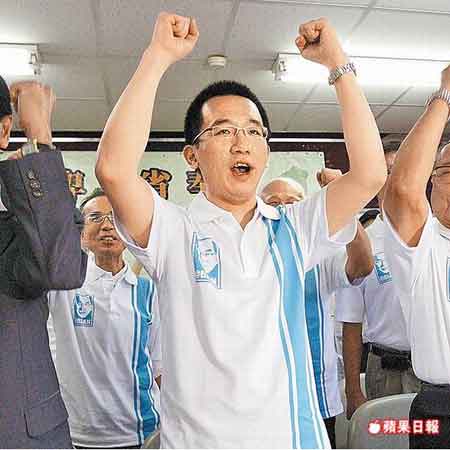 陳致中昨宣布參選高雄市議員時,左手戴著28萬元勞力士表。圖片來源:臺灣《蘋果日報》